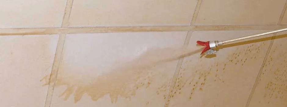We use the appropriate mixture of our 18 proprietary solutions to tackle the specific problem we encounter at each site. The mixture reacts with the dirty ceiling and removes the soiling. This occurs without damaging the surface of the ceiling or walls.